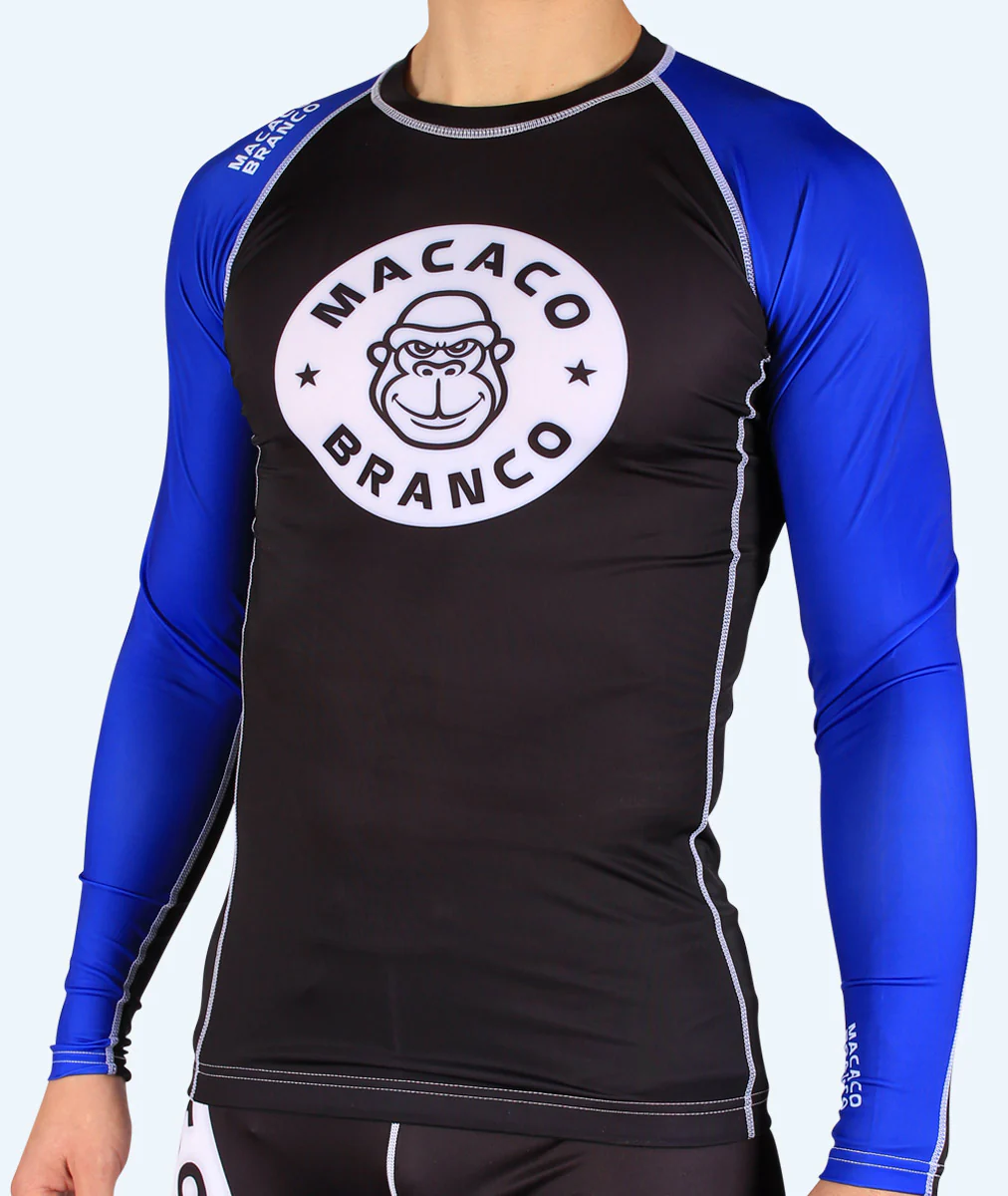 This rash guard is ranked IBJJF "blue" and is constructed from high-quality 180gsm fabric, with triple stitching and overlocking across all major stress points.